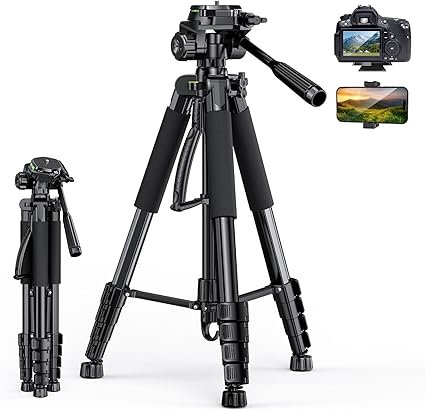 | AmazonBasics 60″ Tripod 🔗 | $25 | Supports 6-8 lbs, quick-release plate, aluminum legs for stability YouTube | Landscape, long exposures |